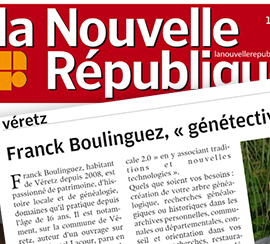 Je travaille toujours volontiers avec Franck Boulinguez, véritable "père Noel de la généalogie". Ses cadeaux de chercheur alimentèrent même certains de mes cours magistraux!